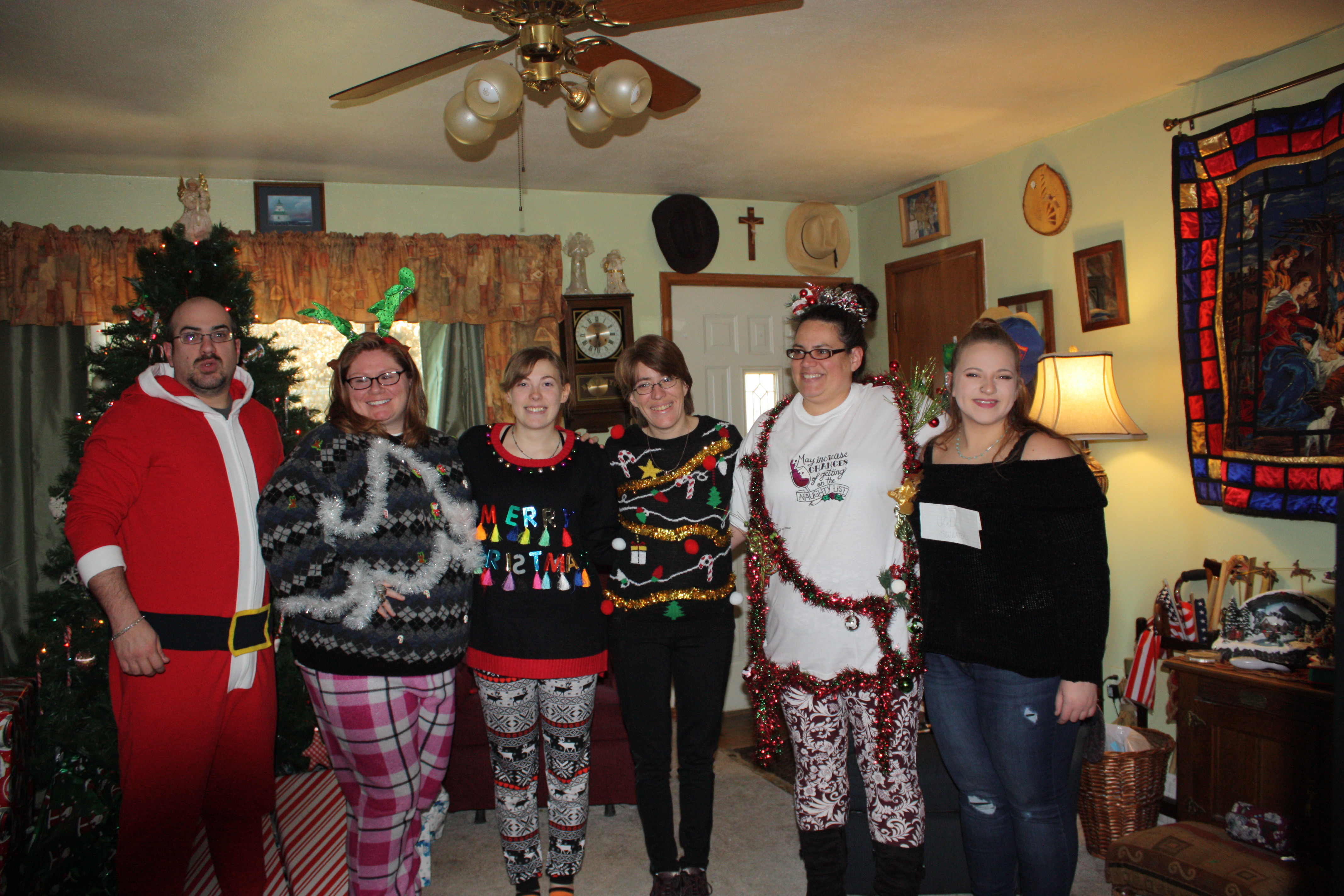Ugly Sweater contest Christmas Day. Alicia won(2nd from right).