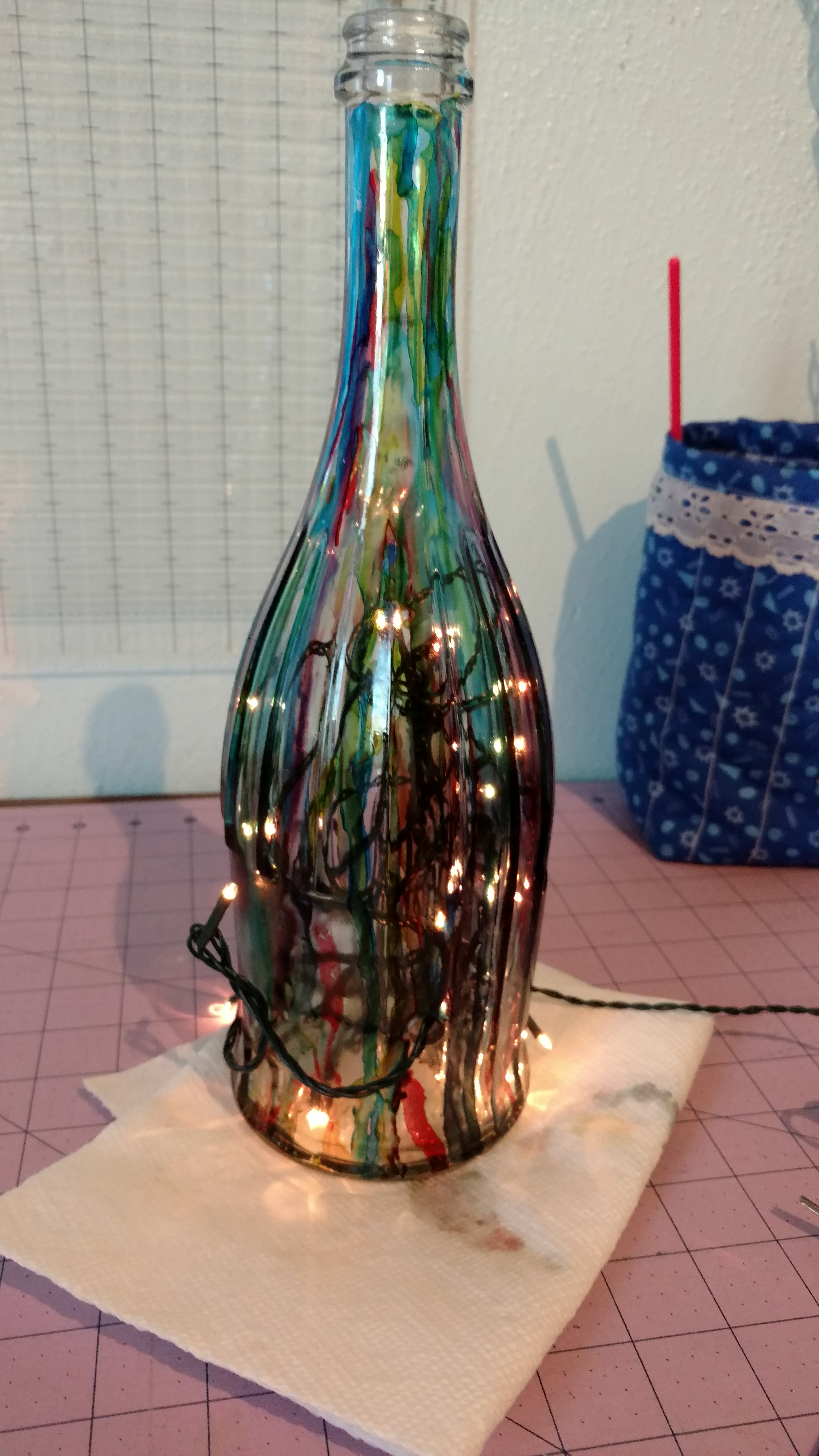 I did manage to play with alcohol ink and a wine bottle. I do like this idea and plan on making lots more.