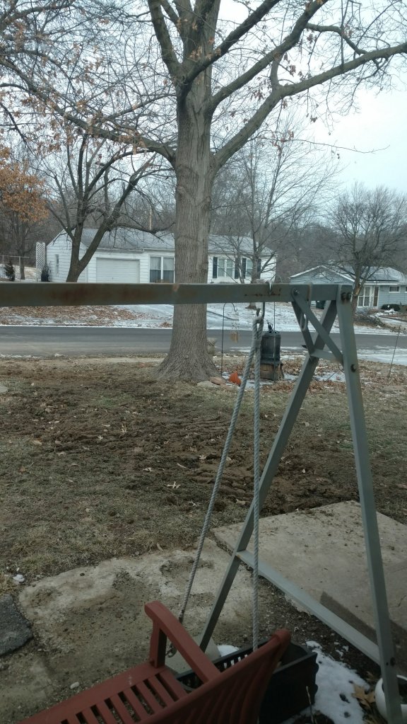 Two holes had to be dug. If you look at the previous photo there is a man in an orange hoodie hood…here he is in the hole. Yes, that is his head.