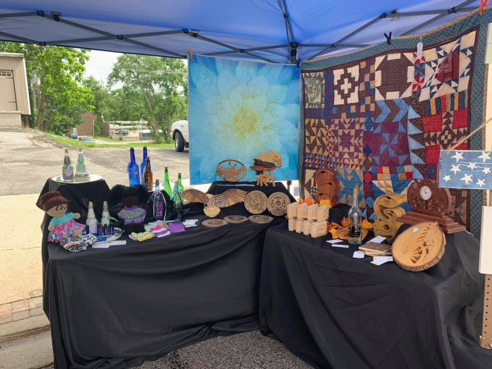 This past Saturday we had a craft fair at a Cork and Canvas fair. It was a great time. We had to hold our tent down at time because of the wind. A few people actually had their tents go airborne. IT had rained so hard the night before and earlier that day. For that reason I am glad for wind. There were over 5 blocks of vendors, and every 3rd one was a Winery from some place in Missouri. Anyone over the age of 21 could sample as much as they wanted. This made the people watching fun. At one point a lady came into the booth and looked at our items. She asked me how long I had been quilting. I told her I started free motion quilting a little over 5 yrs ago. She smiled at me and told me to try drinking a glass of wine while quilting, it is even more relaxing. HAHHAHA. She was so sweet you couldn’t take offence at what she said.