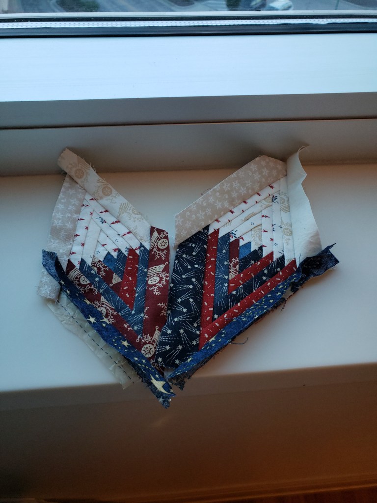 I have 2 1/2 blocks (diamonds) fro my log cabin wall hanging. Only 30 more to go.