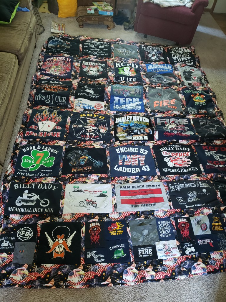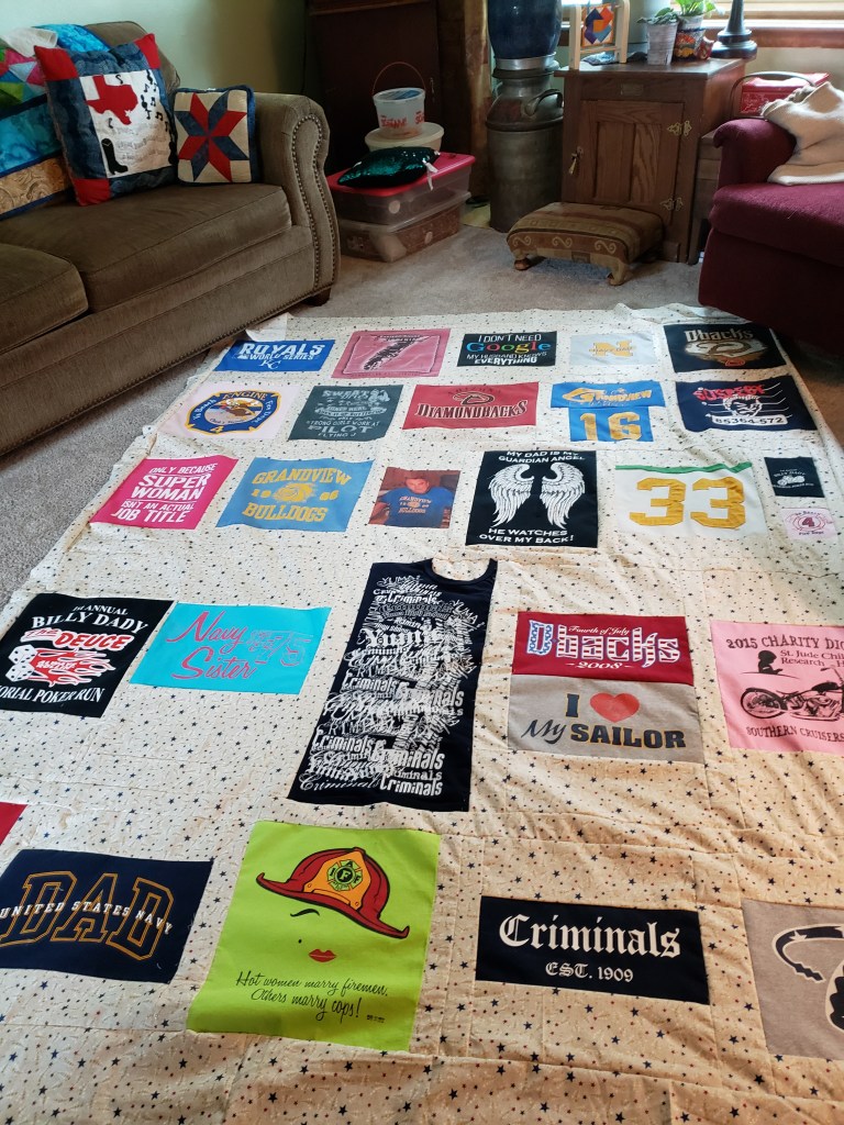 These are the lady’s dad’s t shirts that we made her quilt out of.