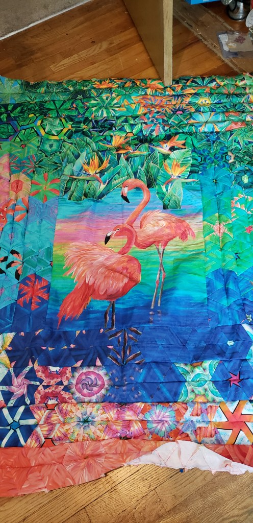 My goal for this week is to finish the flamingo quilt. I got the top completed last night and so the quilting is next. I have been asked to make a wall hanging for the school I worked at in memory of one of the teacher who lost her battle to cancer. I am in the drawing stage of this and hope to have something final to start on by the weekend.