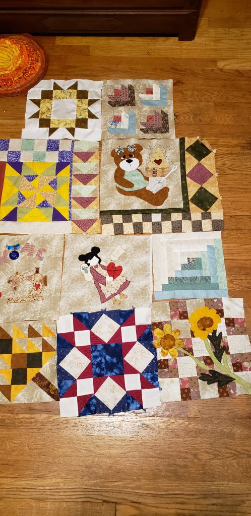 I had a great routine going until I started making masks and then all went out the window. But I am now on track again. I had joined a SAL from Italy about March or April and then got behind. Now I am working on putting borders on the blocks and then will be putting it together. When that is done, I have an applique that is about 1/16 th done, Christmas to make and so little time.