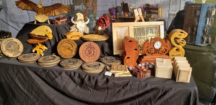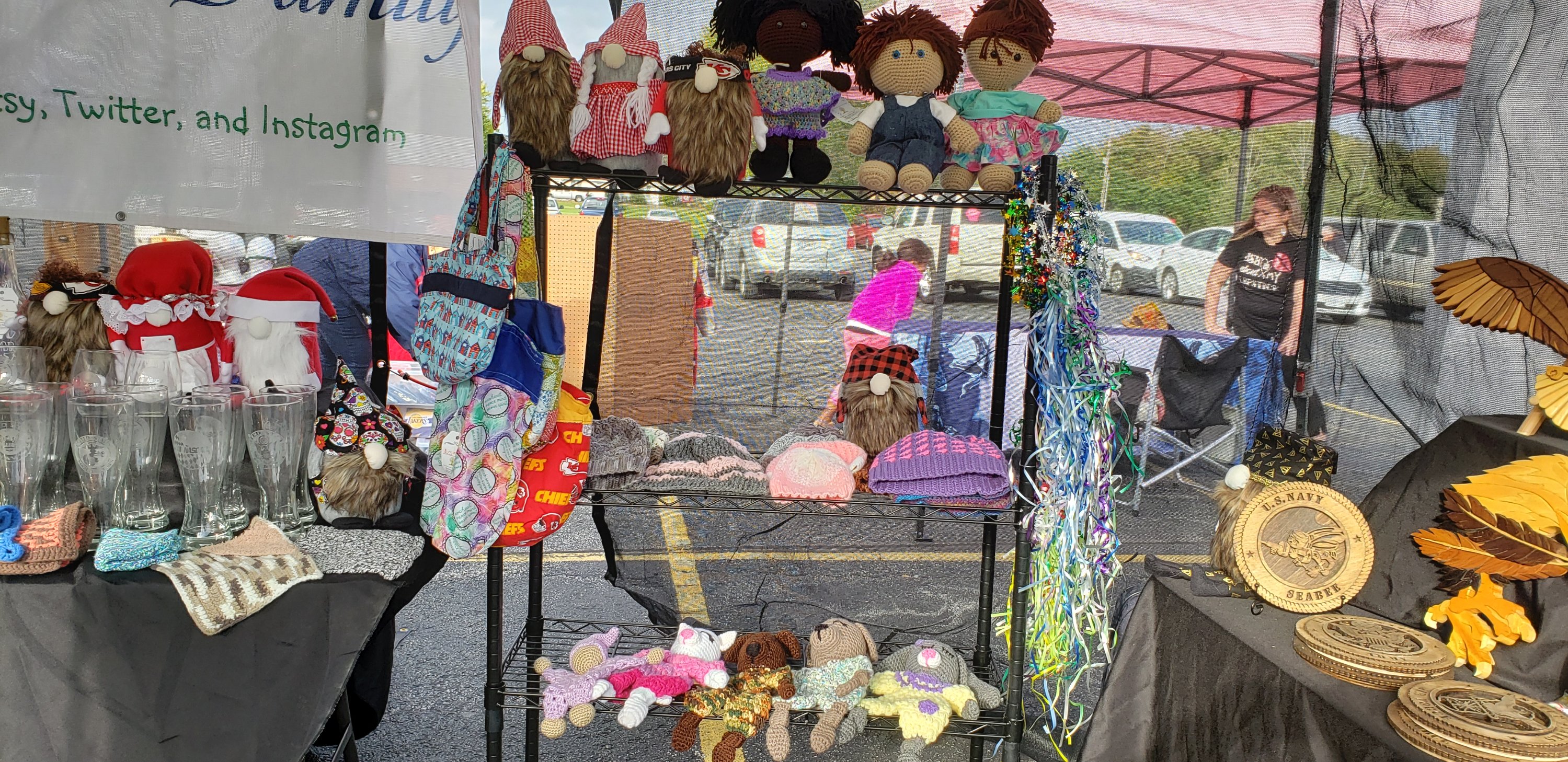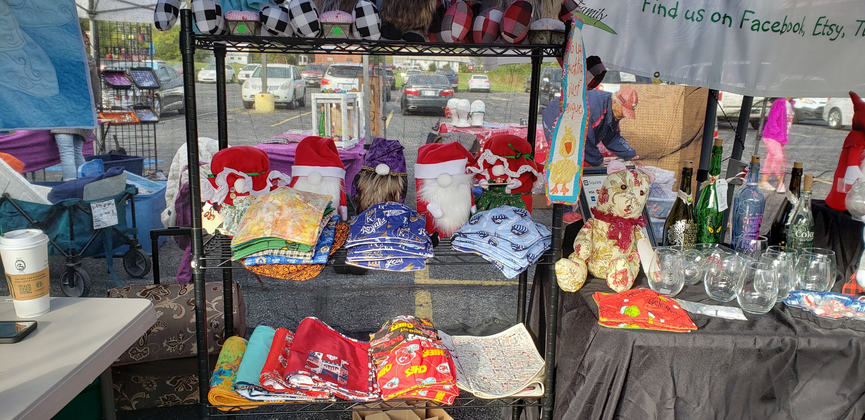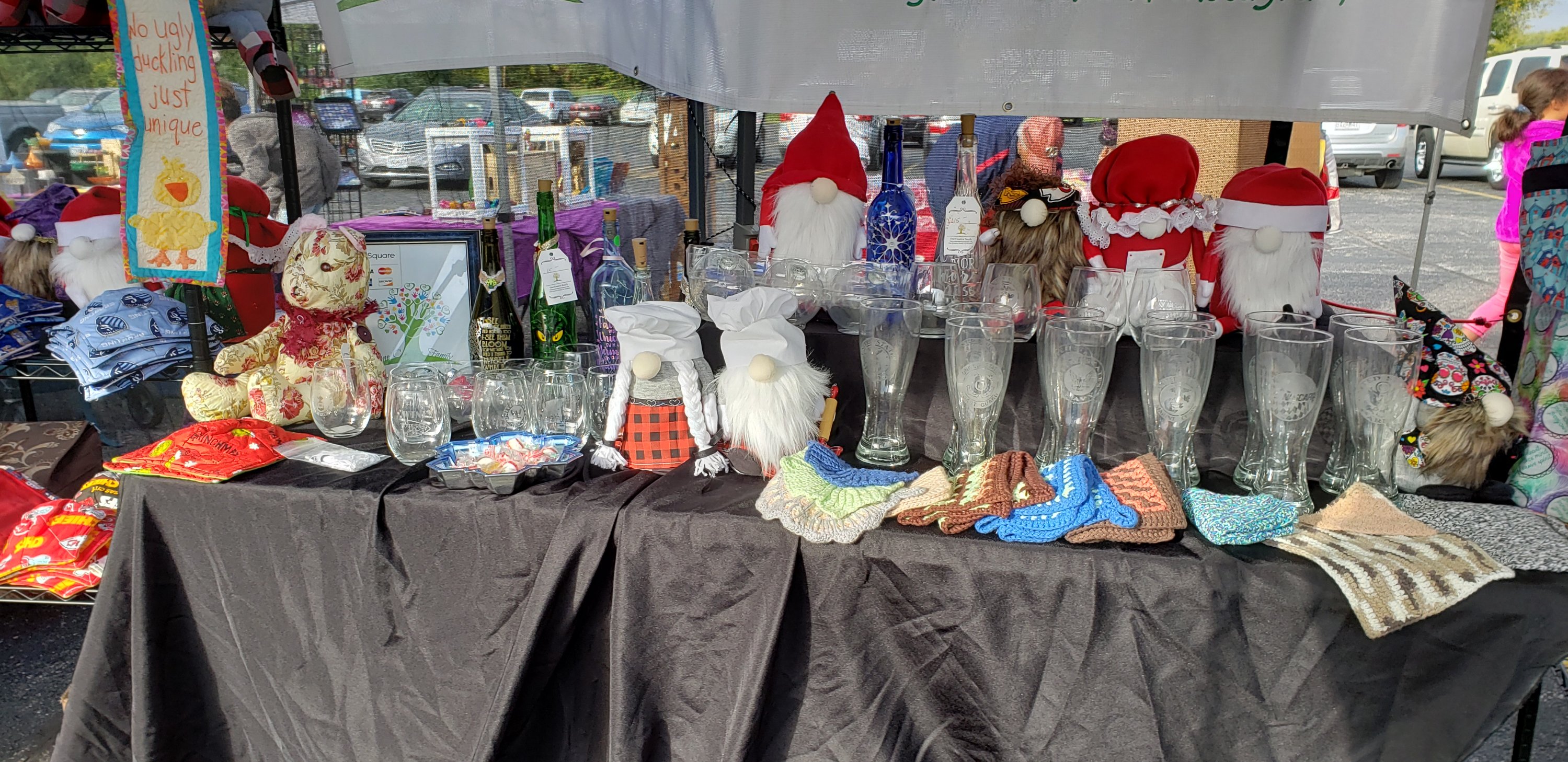 We finally had our first Craft Fair of the year( or I should say last 2 yrs) It was so much fun. The day had chill to it, but was sunny and people were so friendly. I love to visit with them and see everyone’s crafts. The only negative of the day was no one bought any of my Gnomes. Maybe the reason was the booth next to ours was The Gnome Home. Her selection was really nice. Here is a peek at what we had in our booth.