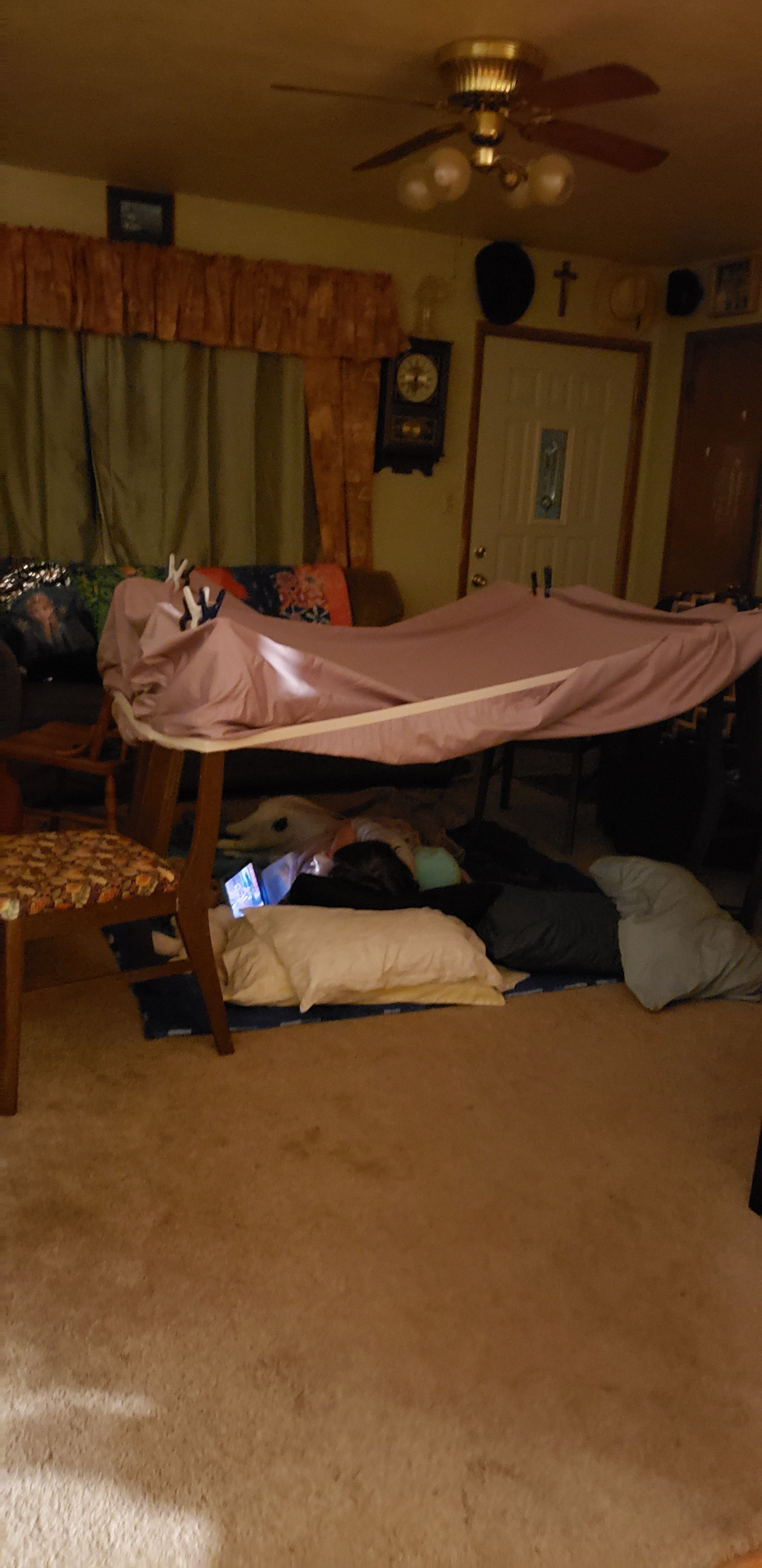 When I was working I would be spending my Spring Break doing anything I wanted to do after spring cleaning the house. Mother in law and I would take a day going to yarn shops and going to garage sales. Now jump ahead 7 years and I have retired and another granddaughter here is our Spring Break is filled with baking, making fabric Easter Eggs and indoor campouts.