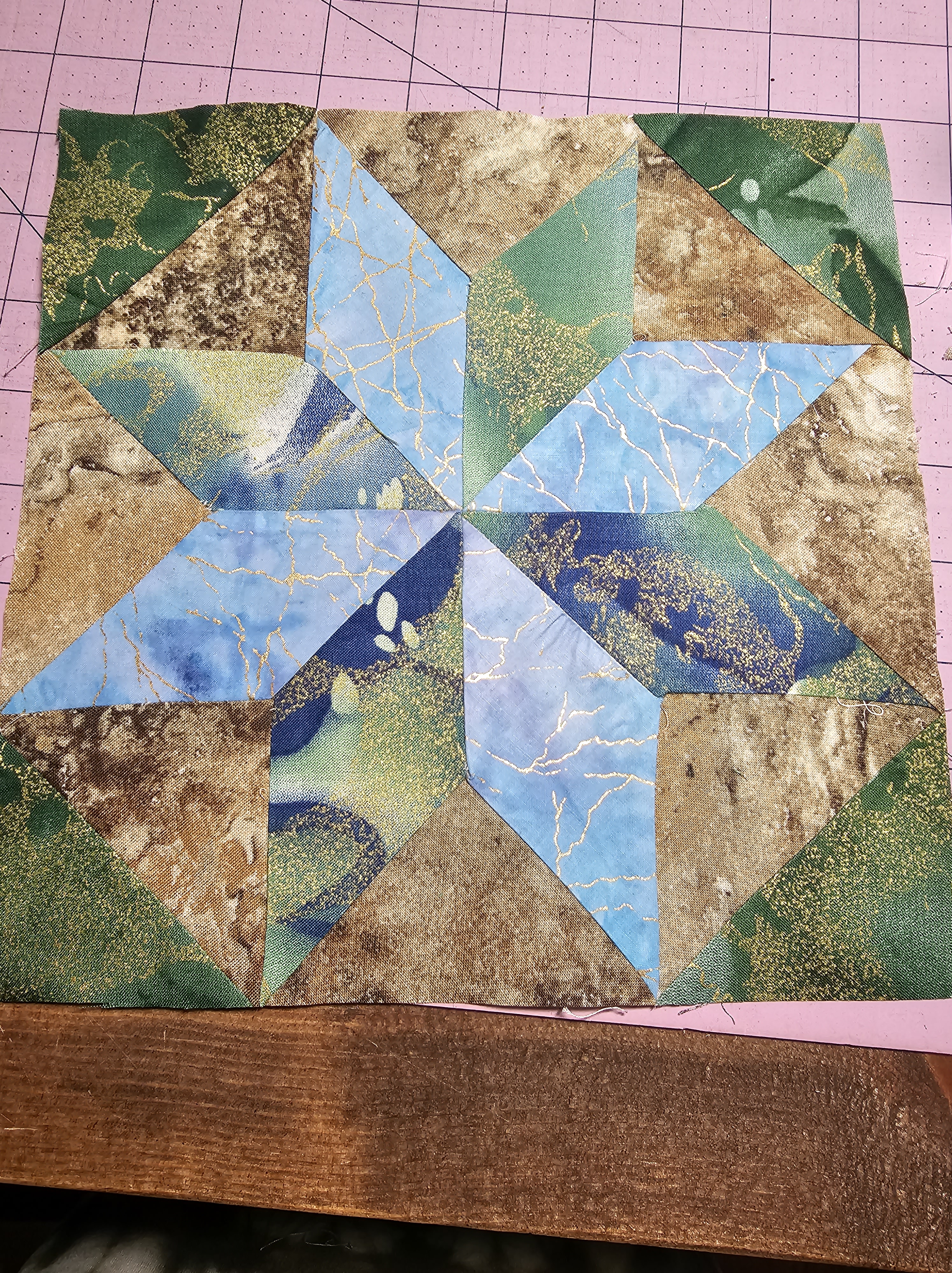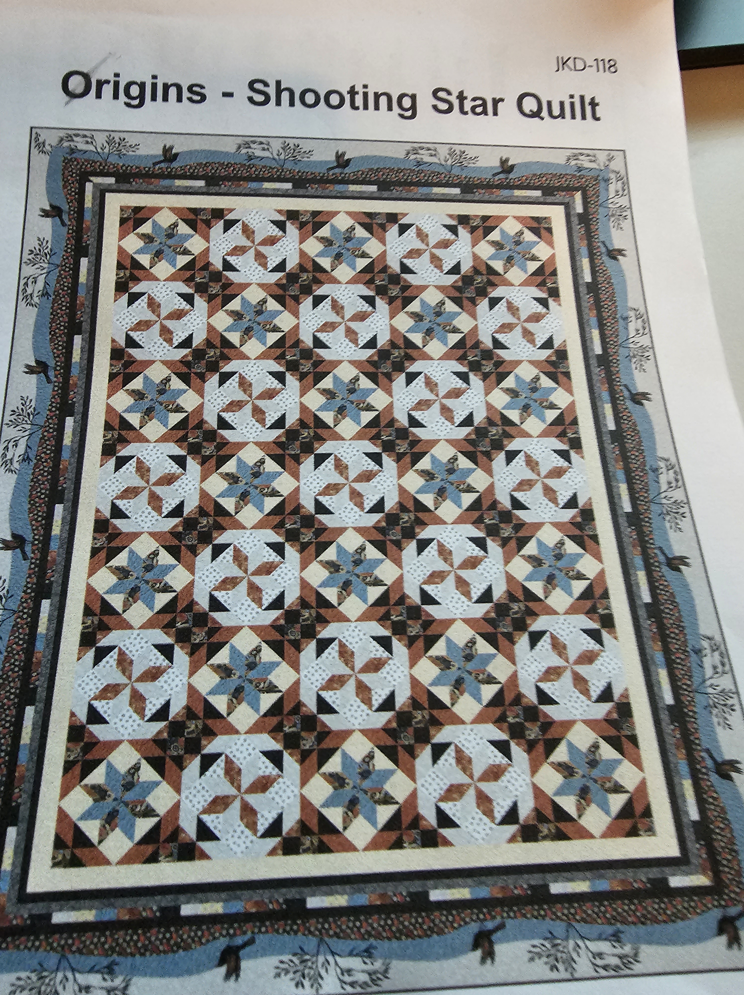 The bottom picture is what the finished quilt will look like. ell I have gotten some of Block A for the quilt “Origins – Shooting Star Quilt” By Jamie Kalvestran. This Quilt will be out in September. Follow https://www.jamiekalvestrandesign.com/sewing-with-jamie… #scrapbagspatterns and tag @jamiekalvestra Blocks are going good especially once I got it into my head what reverse means. Gonna like this quilt. Hopefully today will bring the end of block A and I will move on to Block B.