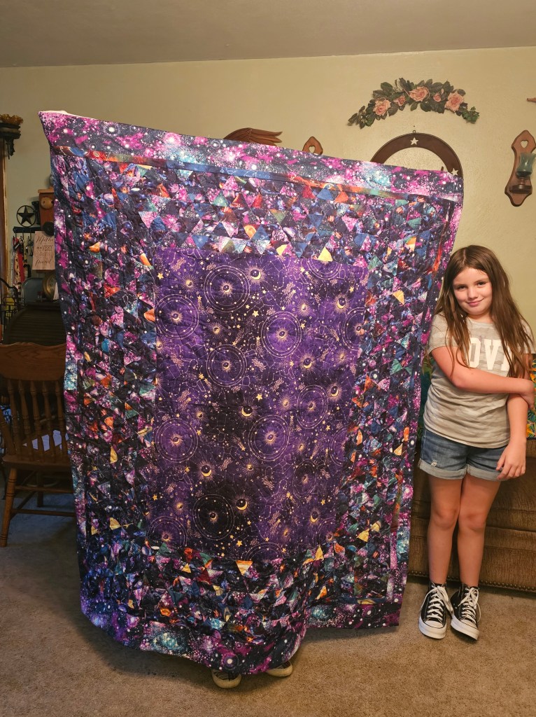 The 2nd new member is Granddaughter Destiny. She made her first full quilt and entered it into the quilt show. She is making friendship braclets now and wanting to be one of the adults. She is 10 going on 20.