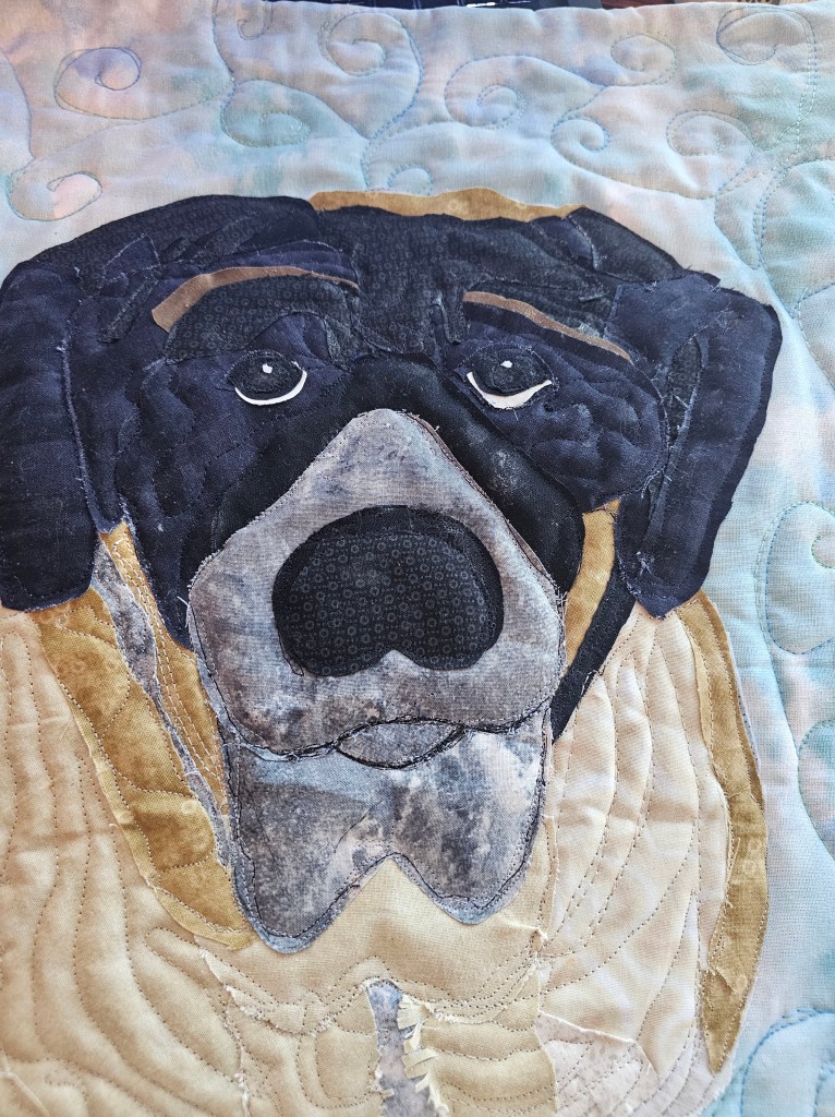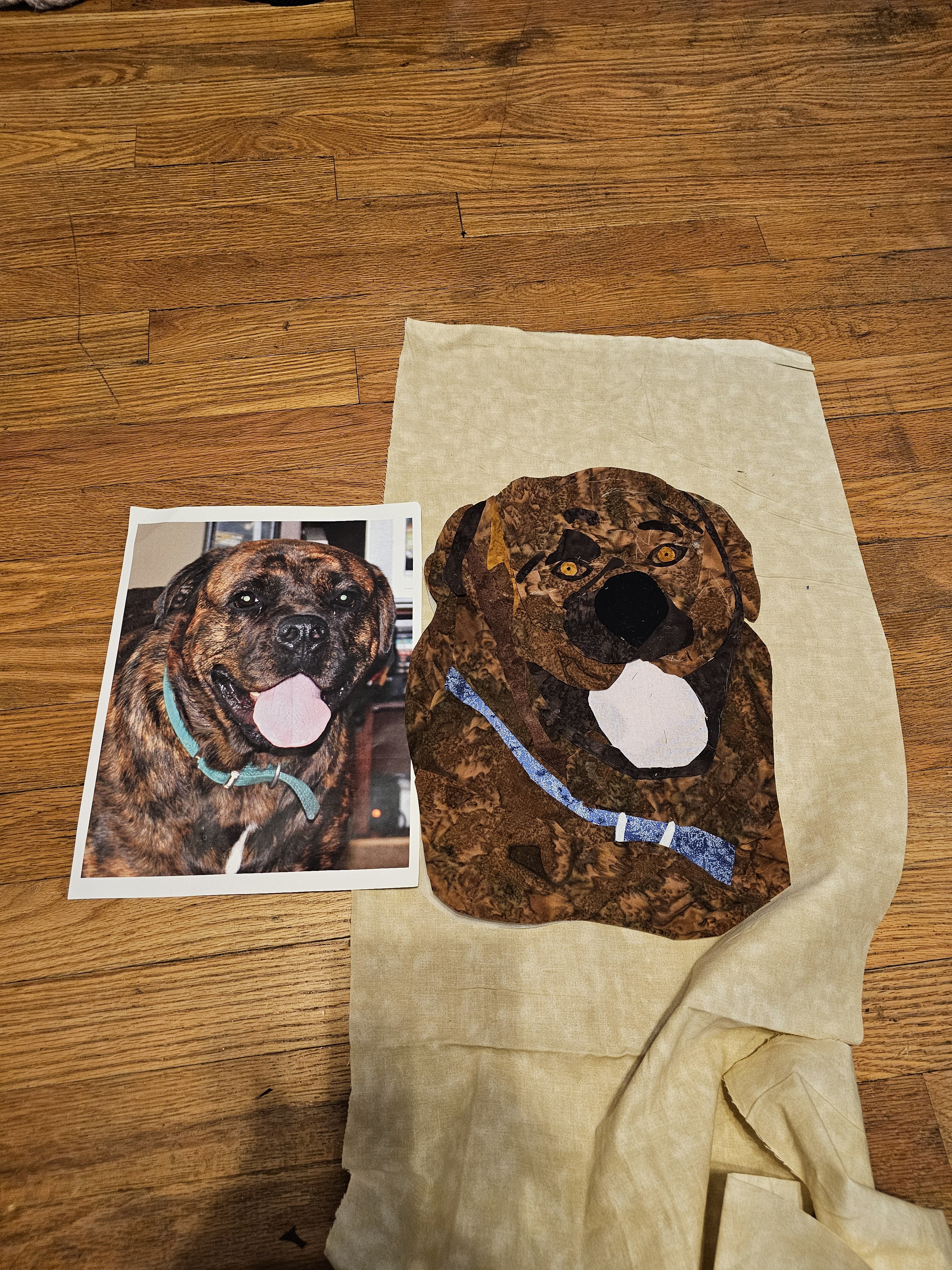 While I was recooping from foot surgery I took a Pet Portrait class from Rochelle Rice of the Inappropriate Quilters Blog cast. It was amazing I loved it. Here are my attempts at it.
