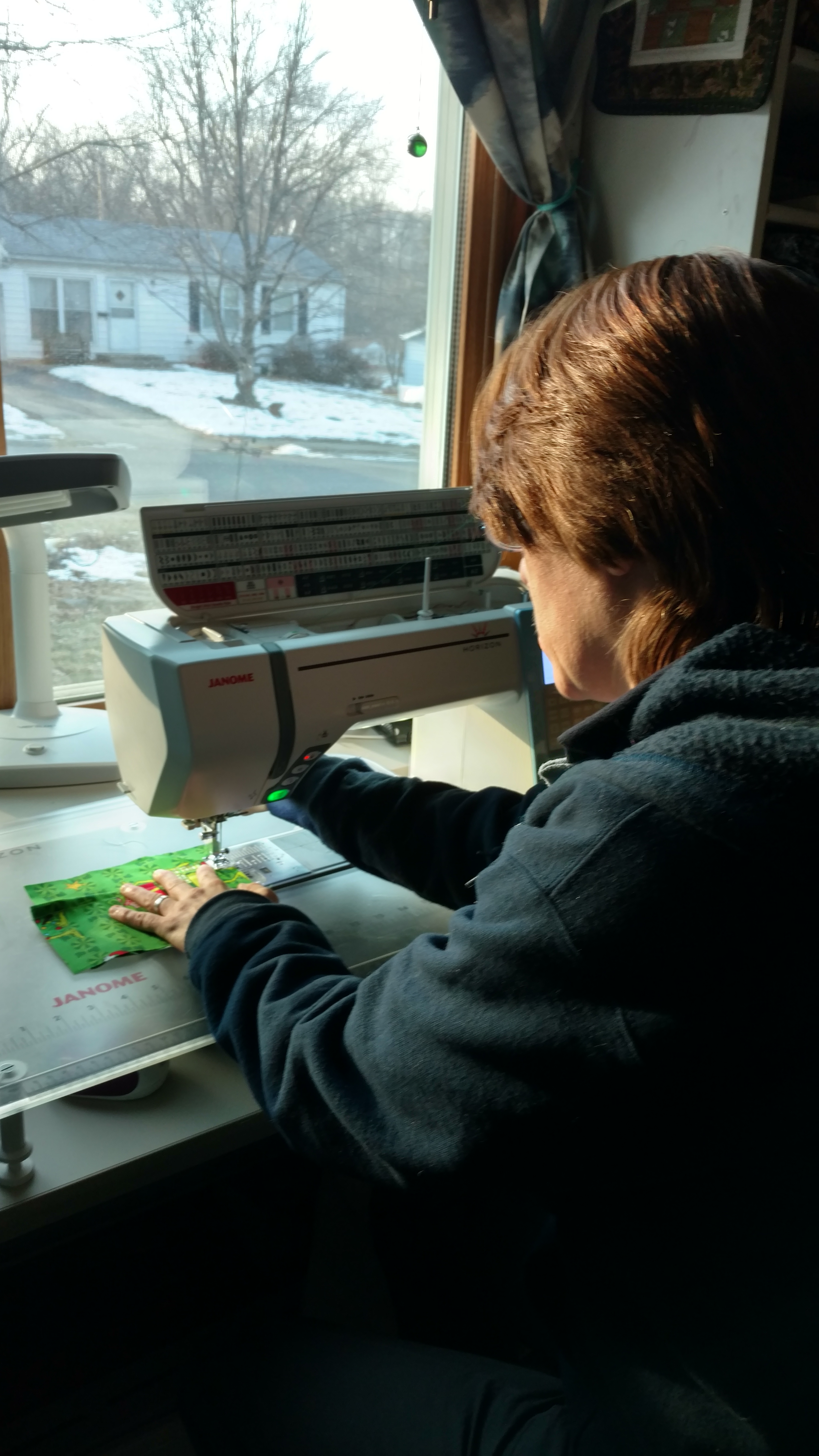 Hello from beautiful Snowy Missouri. Today has been a wonderful day starting with a pretty white powdery snow. Then working on my APQ UFO Challenge. Since doing this and a few more challenges I have been getting more things accomplished. This last month I learned a painful lesson. I was having issues with headaches and no one could find out why. Then the Neurologist sent me for Physical Therapy. I learned my posture was not good, and I was not doing any stretching. Now I stretch, change my chair position, and use better posture. One month no headache. YEA!