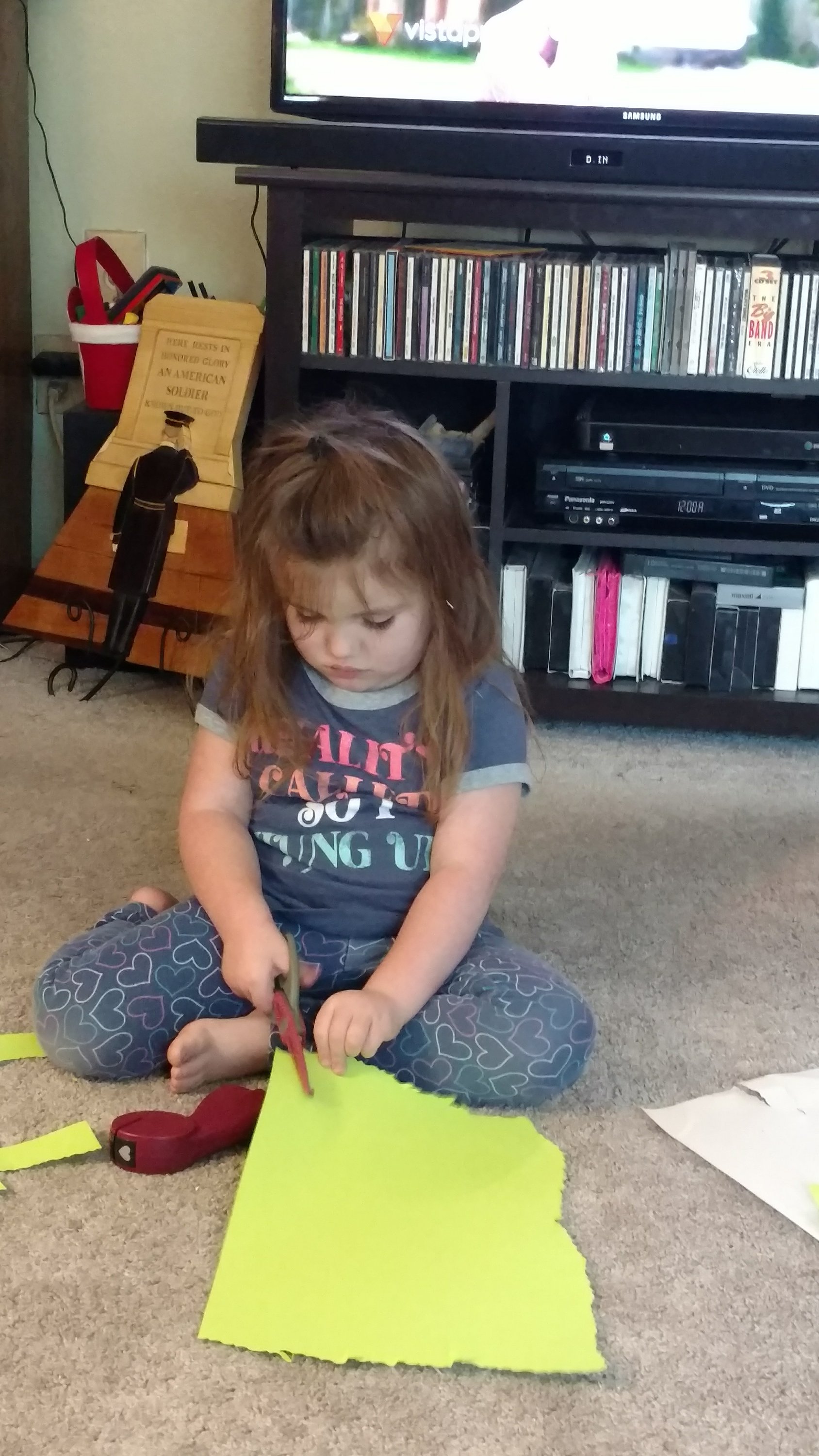 She got to “Drive” the “tractor”.  A good ole time. As they were walking around the yard, she saw her first snake. It was a gardener snake and Aunt Alicia’s boyfriend picked it up and threw it over the fence, BUT not before it said,”Hello, Destiny, I am a snake.” She proudly told Grandpa she told it hi back. I love the imagination of kids. She will take after one of her sisters and both cousins. They have all been in Drama while in school.