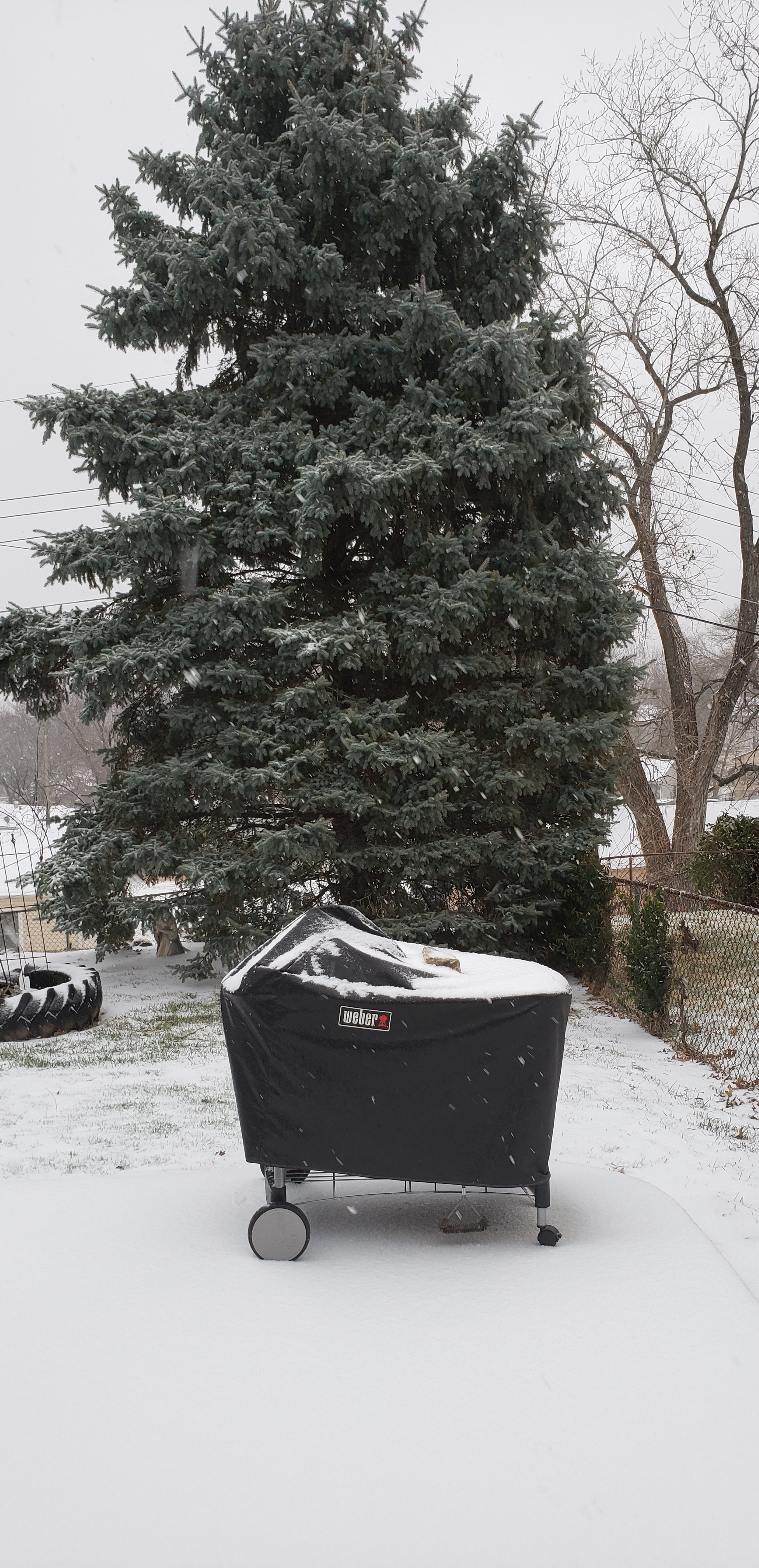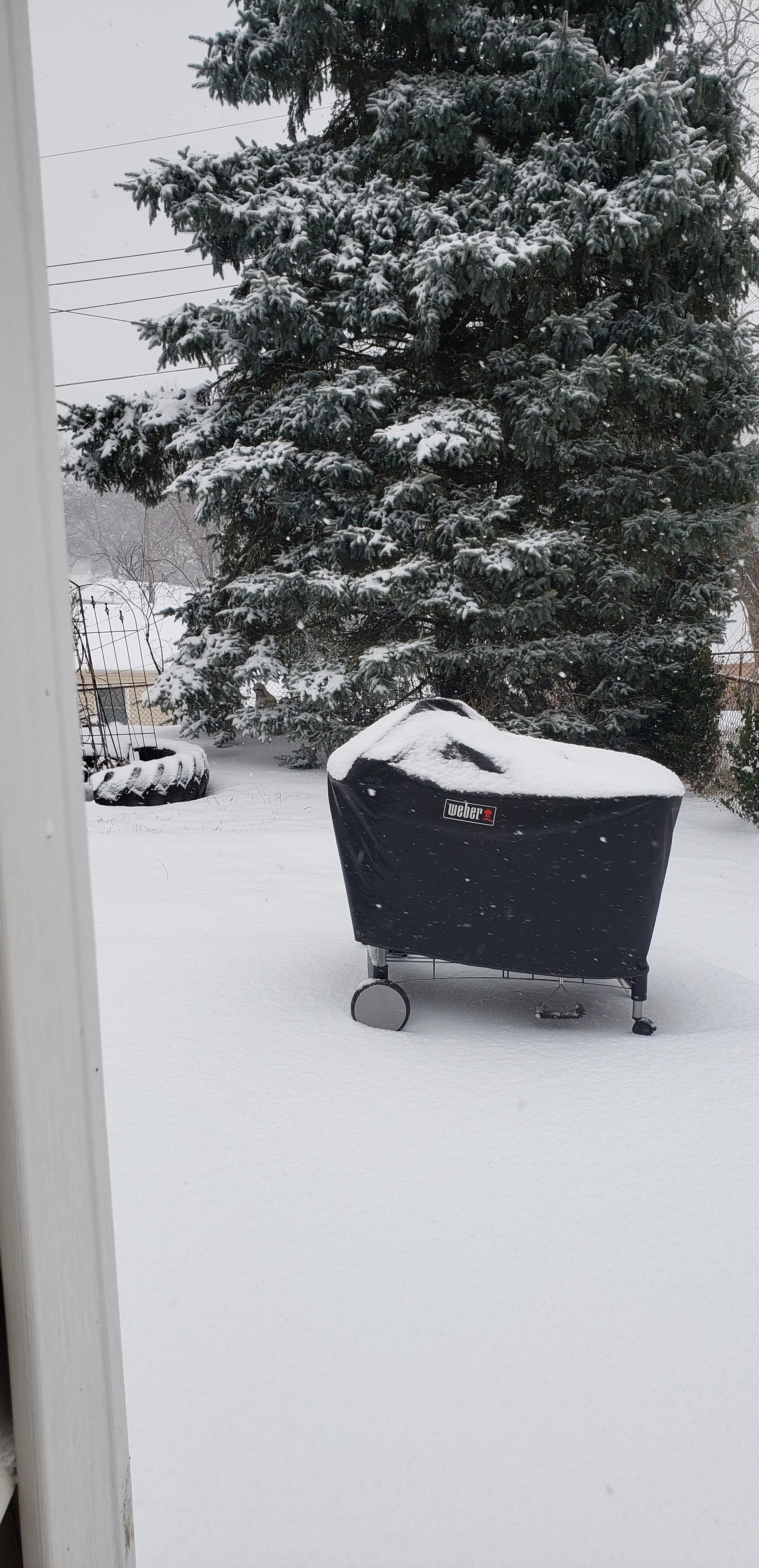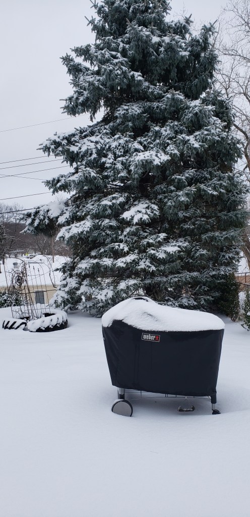 We woke up to 1/4inch of ice then the snow started. By 9am this is what the back yard looked like